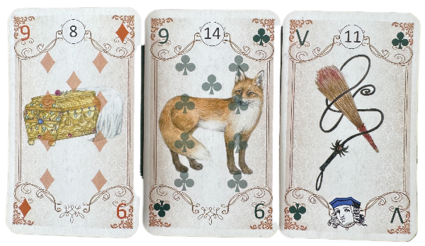 今日の未来を整えるカードは「棺」「狐」「ムチ」。最初に見たときは、ちょっとドキッとする並びですよね。棺のカードは「終わり」、狐のカードは「仕事やずるさ」、ムチのカードは「厳しさや繰り返し」を意味します。三枚が並ぶと「仕事の厳しさを手放すタイミング」というメッセージが浮かび上がってきます。ルノルマンカードは時にストレートに響く言葉をくれるけれど、それが逆に心を整理するきっかけになります。
