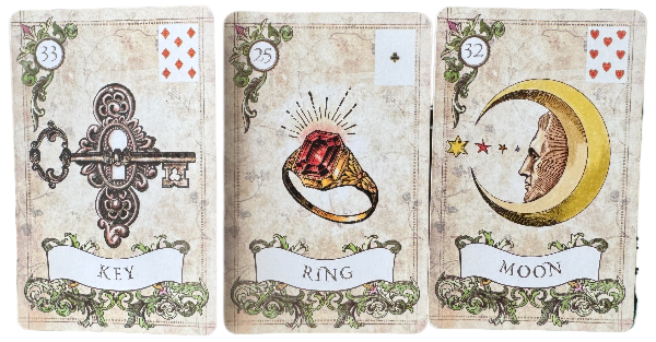 ルノルマンカードの「鍵・指輪・月」が示すように、未来につながる契約は必ず心の満足を伴います。