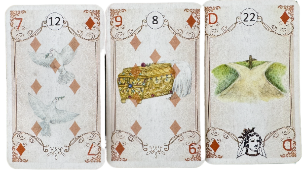 鳥はコミュニケーションや情報、棺は終わりや一区切り、そして道は新しい選択や分岐点を表します。