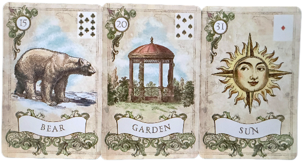 ルノルマンカードの意味No15. 熊No20. 庭園カードリーディングNo31.太陽