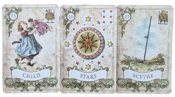 ルノルマンカードの意味No10. 鎌No13. 子どもNo16. 星カードリーディング
