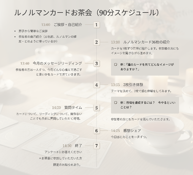 お茶会は約120分。(前回まで90分でしたが時間が足らなかったので変更です)