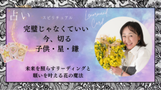 完璧じゃないと動けないと感じている方へ。ルノルマンカード「子供・星・鎌」から、今すぐ一歩を出すためのヒントを読み解きます。発信や行動に迷う方に向けたカードメッセージ。